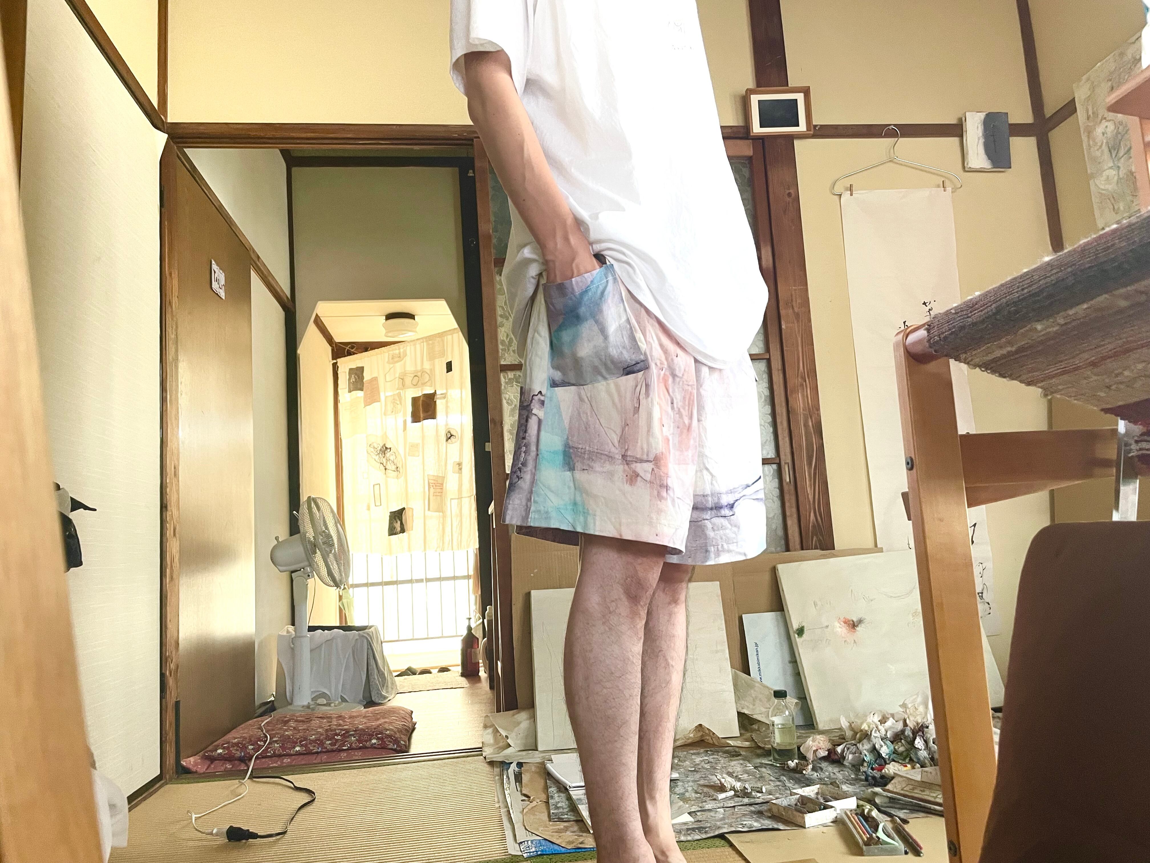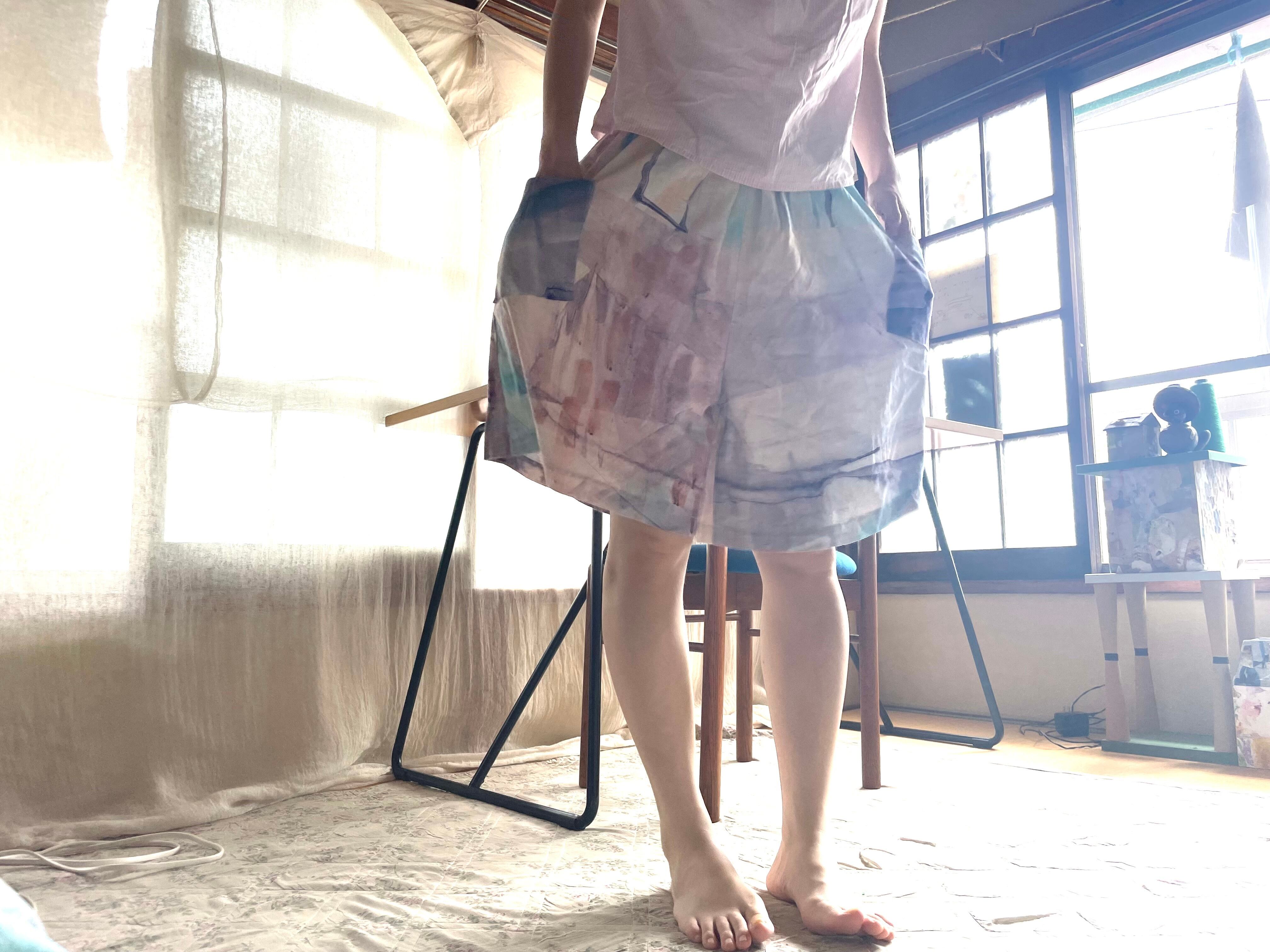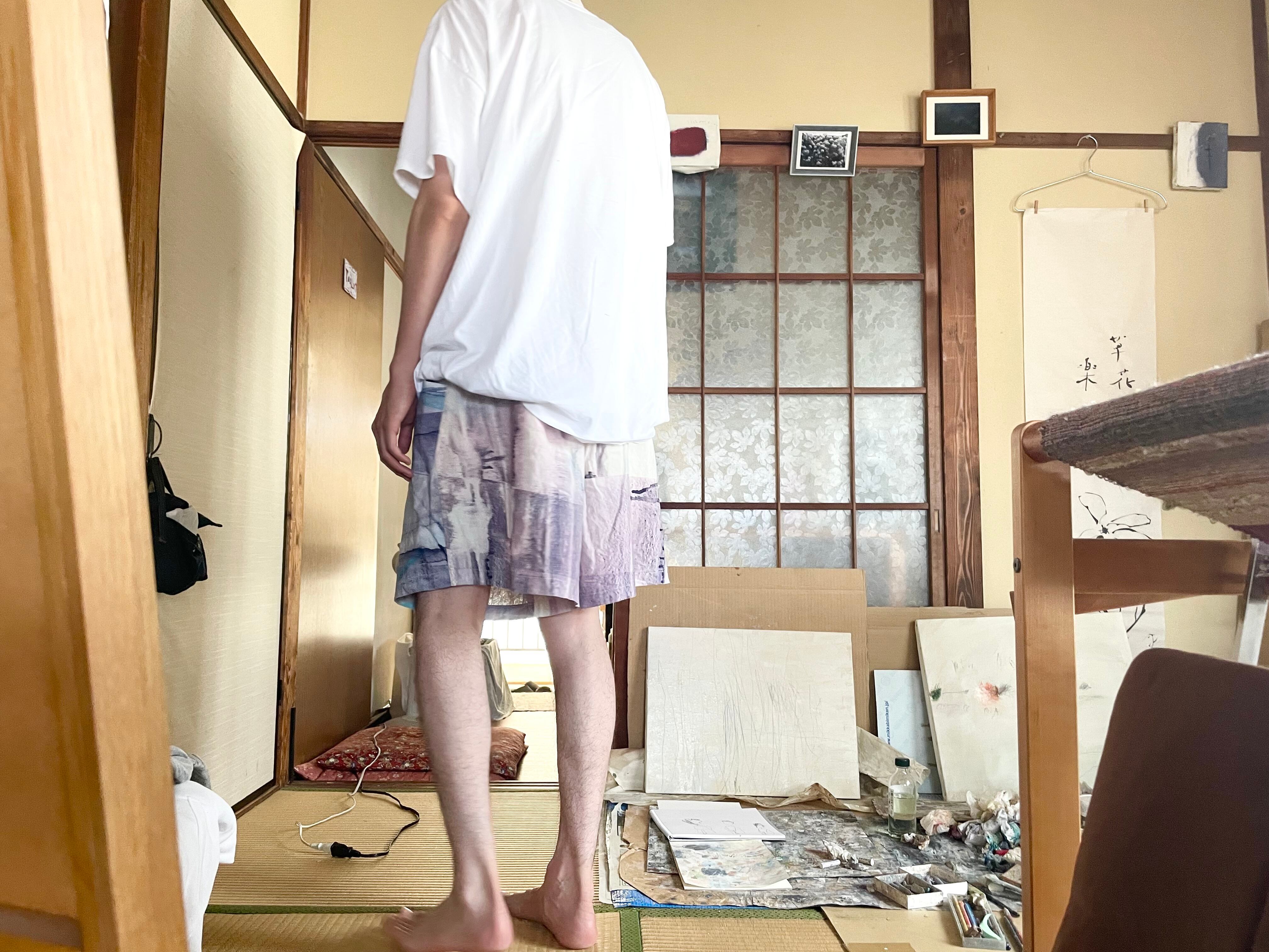 描いた絵を生地にしたいとずっと願っていて、今回、初めて形にすることができました。そして父の誕生日祝いで実家に帰った時、お裁縫好きな母の創作意欲に触れ、“この腕を活かして、私好みなものを作ってほしい”という気持ちが生まれました。幼い頃からずっと、夏の記憶とともに思い出す母のお手製パンツ、オニパン。私の生地で作って貰えたらすごく良いな…