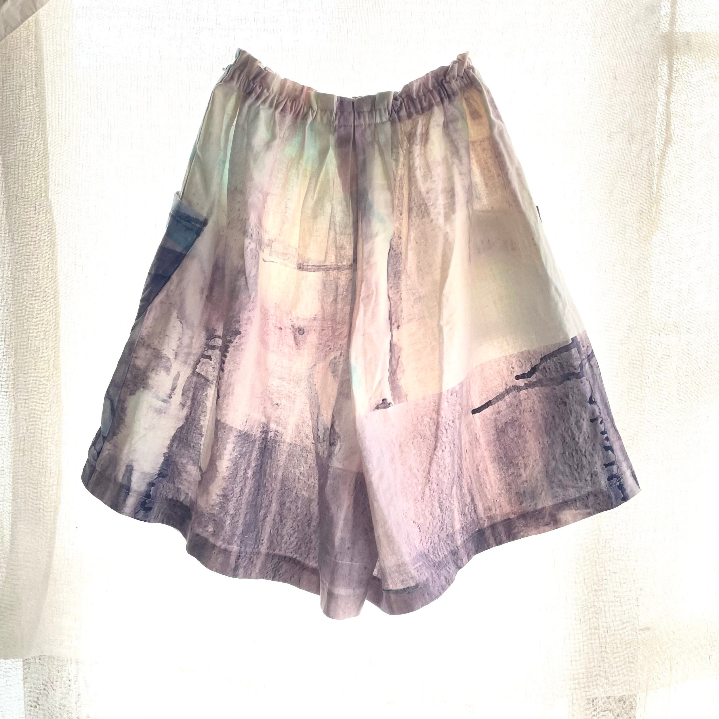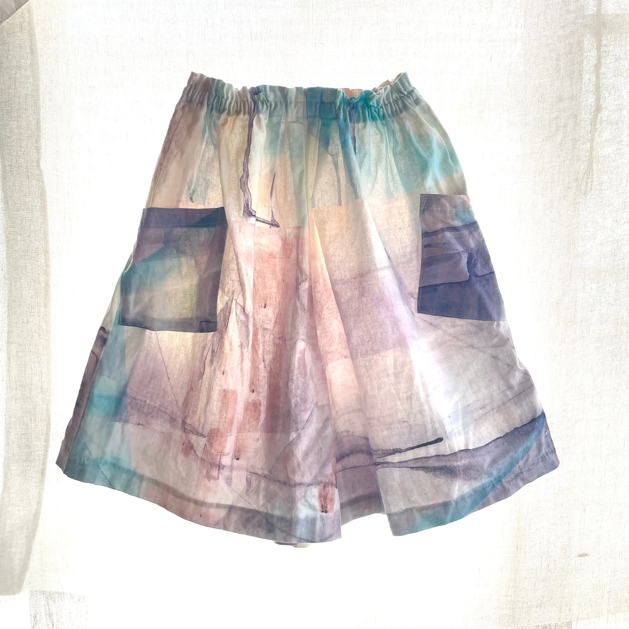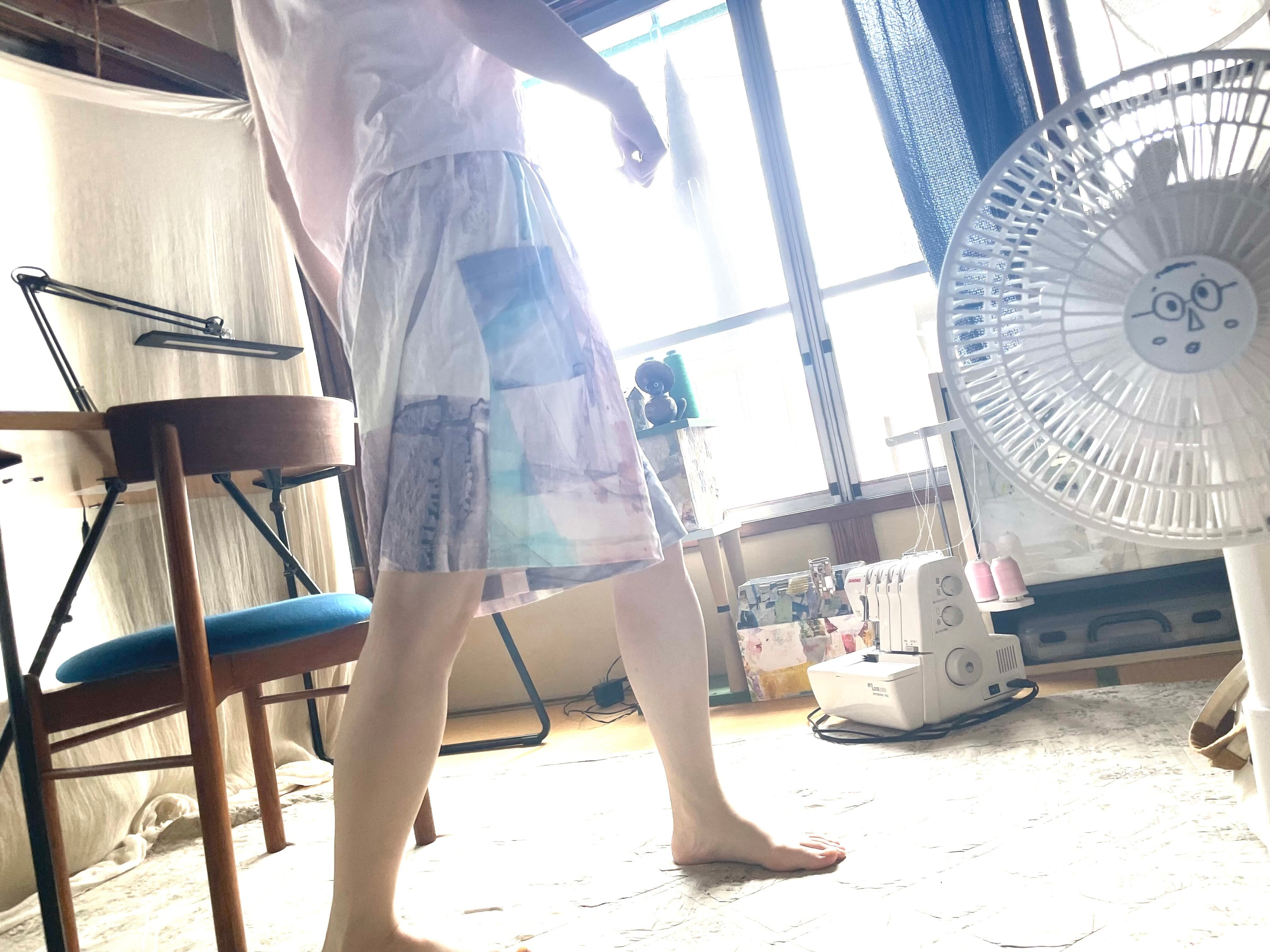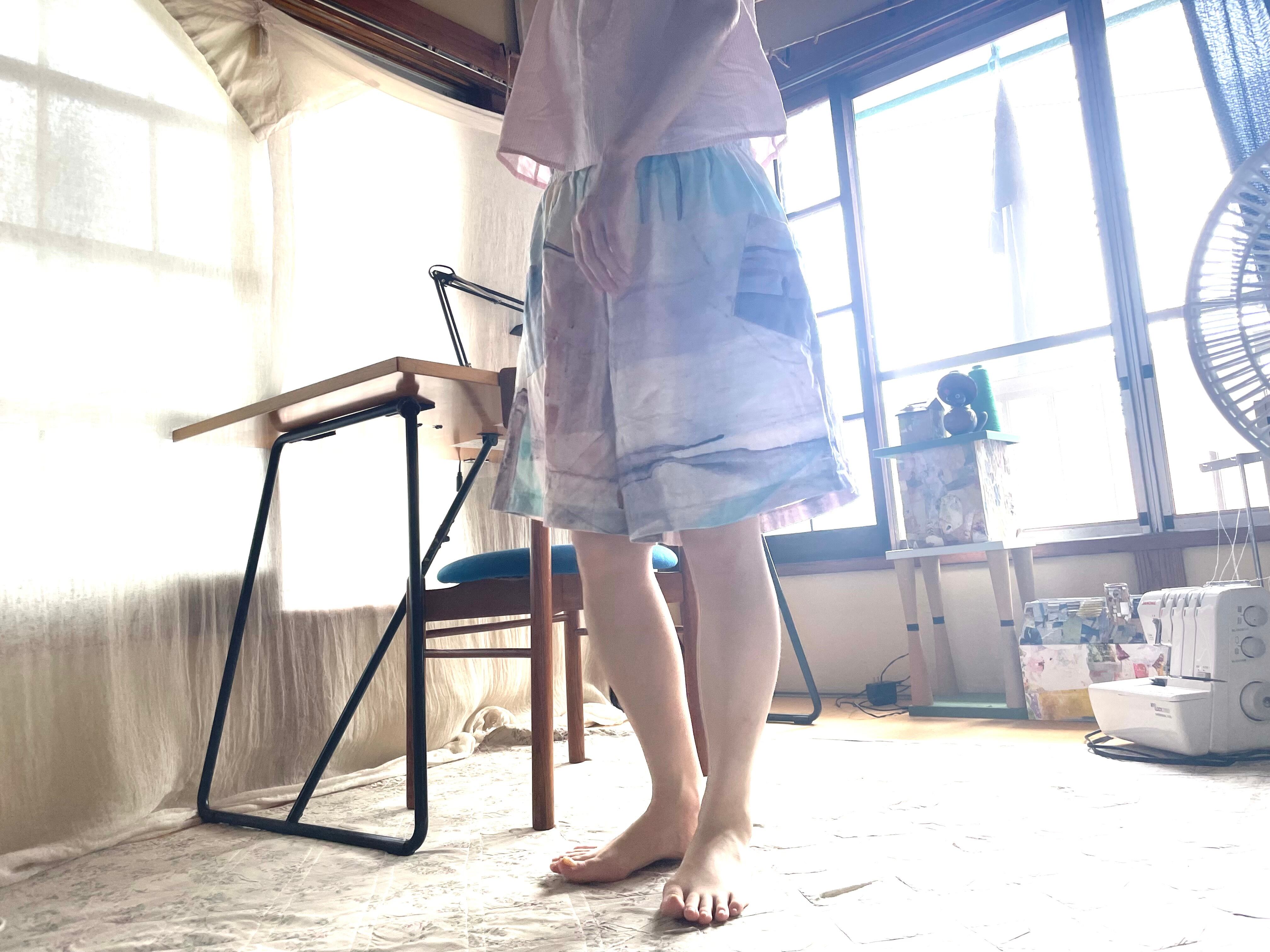 描いた絵を生地にしたいとずっと願っていて、今回、初めて形にすることができました。そして父の誕生日祝いで実家に帰った時、お裁縫好きな母の創作意欲に触れ、“この腕を活かして、私好みなものを作ってほしい”という気持ちが生まれました。幼い頃からずっと、夏の記憶とともに思い出す母のお手製パンツ、オニパン。私の生地で作って貰えたらすごく良いな…