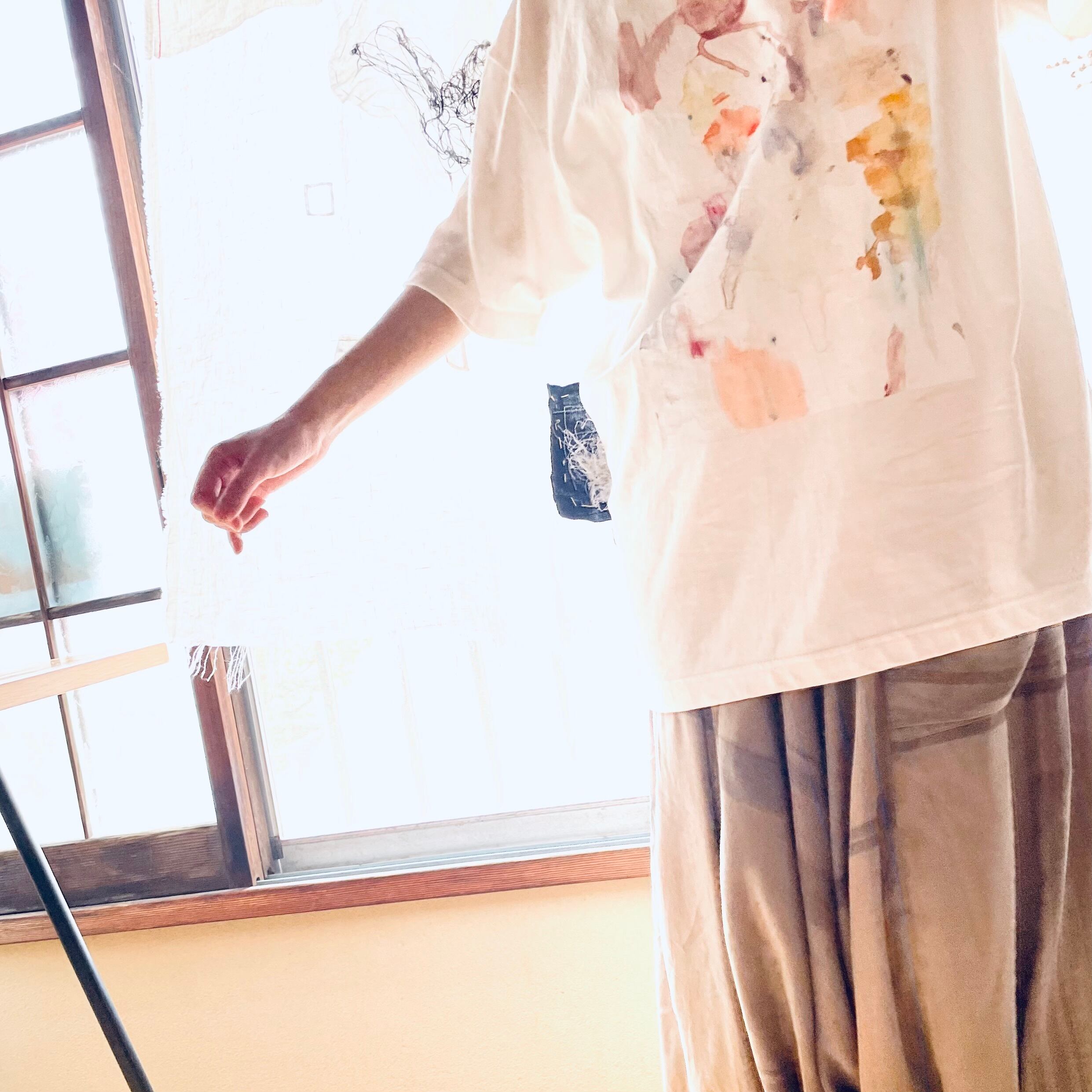 胸にお花が咲いたような、華やかで彩り豊かな一枚。着ていると心が朗らかになる気がします。